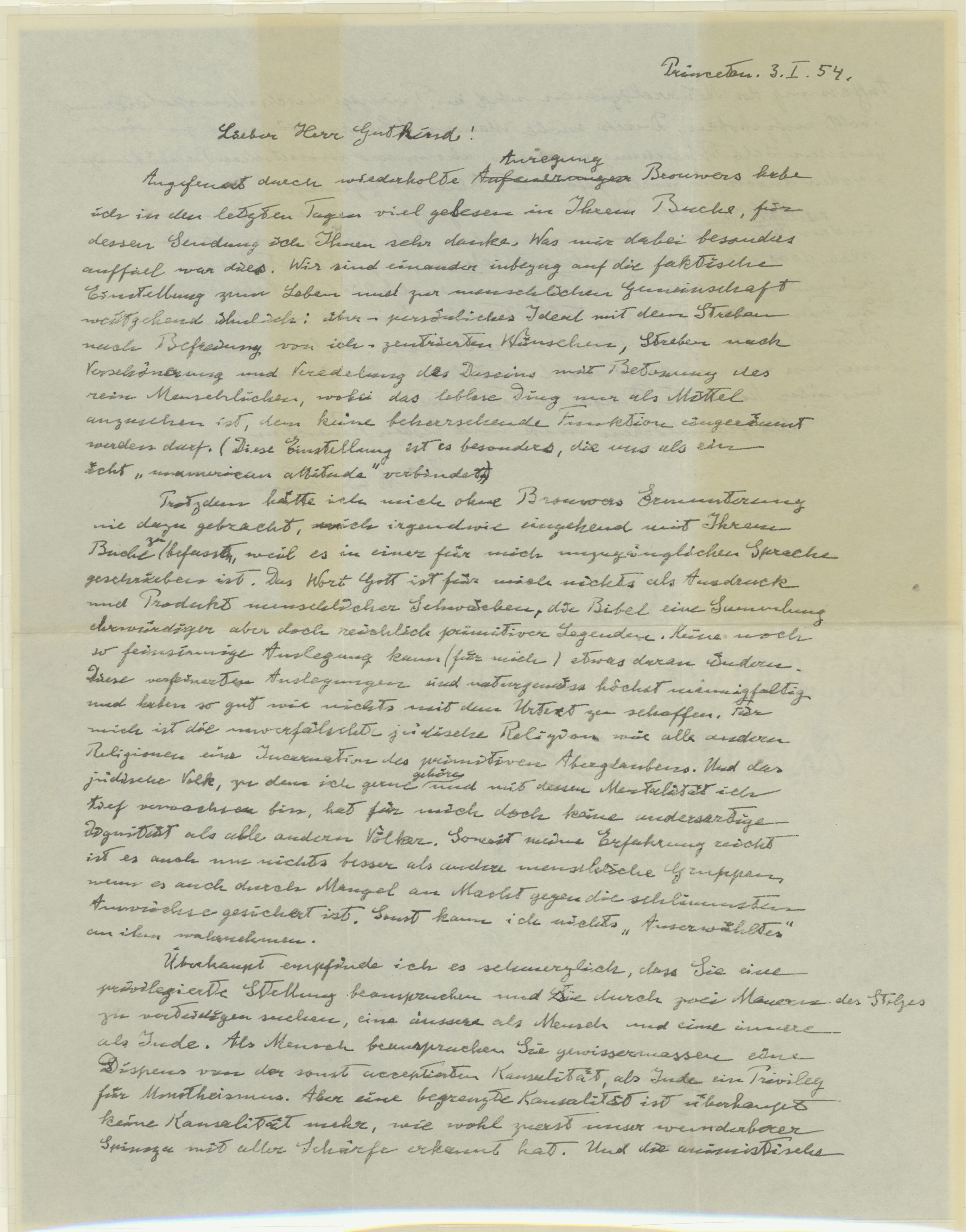 Muito comum alguém mudar a crença durante a vida. Normalmente as pessoas na infância segue a religião ou crença dos pais, mas pode ou abandonar ou mudar de opinião motivadas por observação, estudo, casamento, algum acontecimento etc… E no caso de Einstein um ano antes de sua morte em 1954, ele escreve em alemão no papel timbrado da Universidade de Princenton, nos Estados Unidos, onde o Nobel de Física trabalhava desde 1933, e enviada para o filósofo Eric Gutkind. Comentando o novo livro do amigo,Chosen Life: The Biblical Call to Revolt ( Escolha a vida: o apelo bíblico pela revolta ), o pai da teoria da relatividade assume um tom de descrença e diz que as práticas religiosas são “infantis”. Em um trecho Einstein diz que