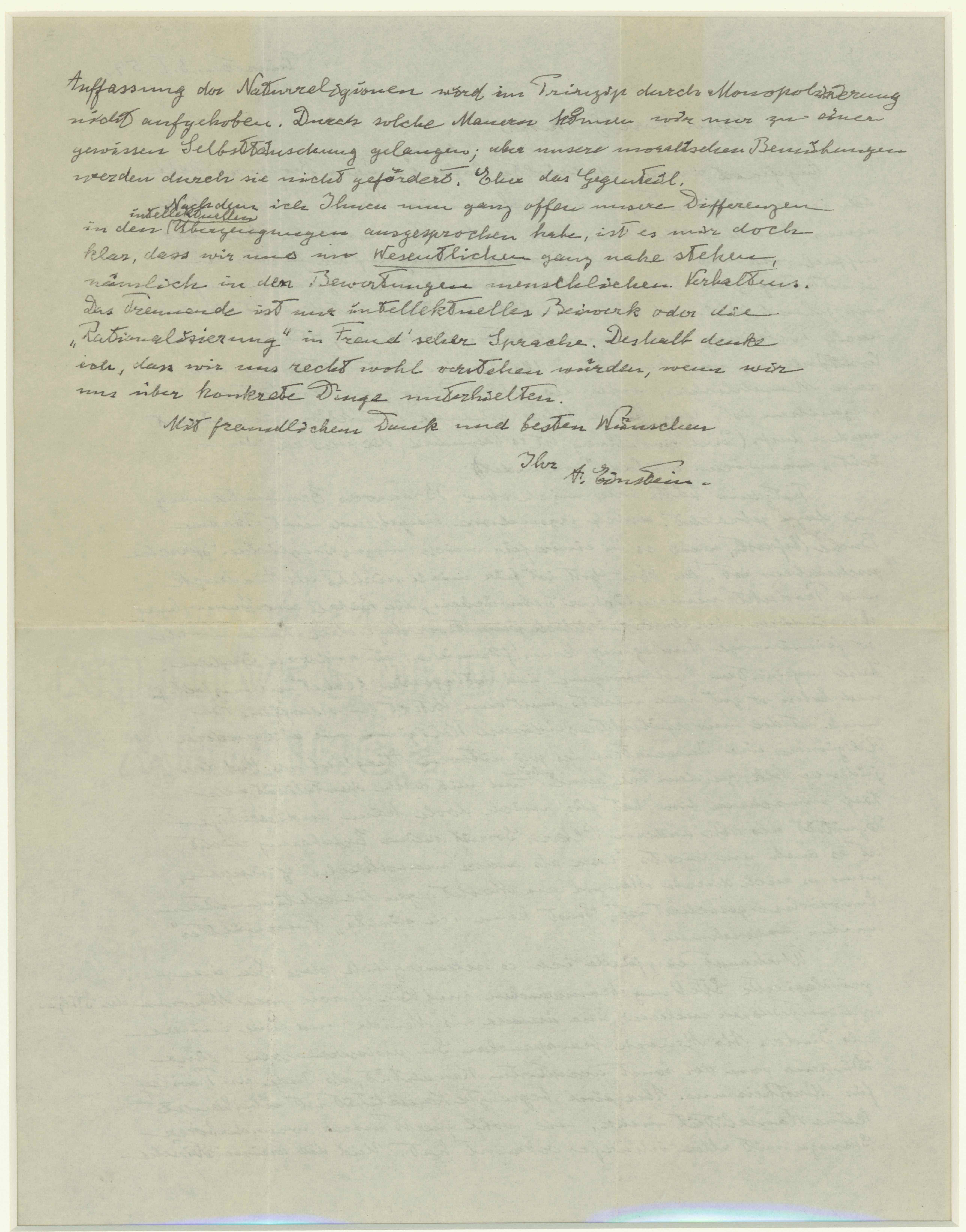 “a palavra de Deus é, para mim, nada mais do que expressão e produto da fraqueza humana” e que a Bíblia é “uma coleção de lendas honoráveis, ainda que primitivas”…”Para mim, a religião judaica, como todas as outras religiões, é uma encarnação das superstições mais infantis. E o povo judeu, a quem pertenço alegremente e que tenho profunda afinidade, não tem qualidade superior em relação a todas as outras pessoas.”